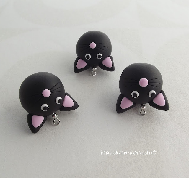 Vanhoja, tuttuja kisuja. Näissä oli tosin hieman haastetta tällä kertaa; harmaat yksilöt ja tietenkin myös korvakoruihin päätyneet ovat tavallista pienempiä. Kun on tottunut tietyn kokoisiin elukoihin, tuntuu toisinaan hankalalta soveltaa niitä pienemmiksi. Pienten kisujen korvat ovat erityisen hankalia, kun niistä meinaa aina tulla liian isoja.